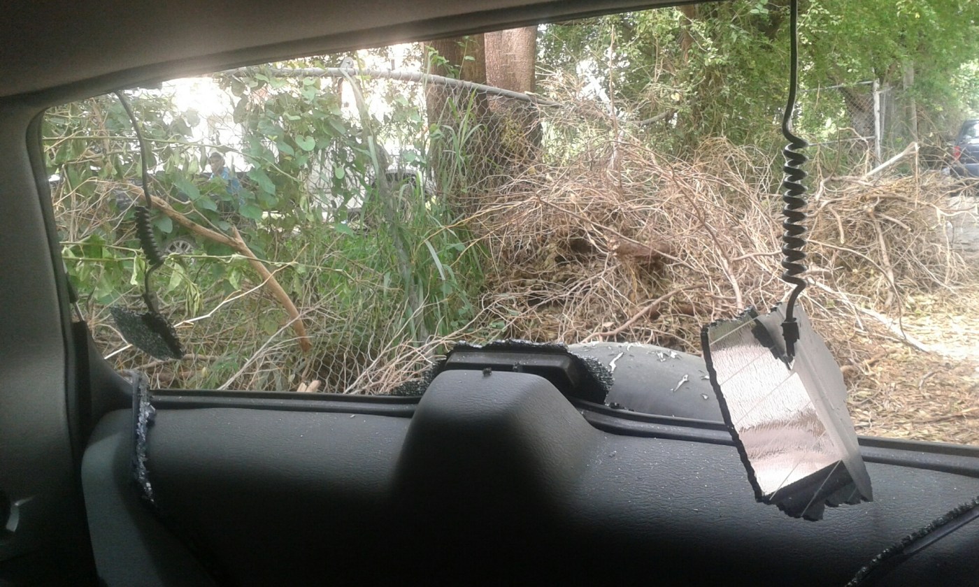 Al llegar a casa de mis padres me estaciono en el mismo lugar donde dos días antes casí le cae un árbol a la Liberty durante la tormenta (Ver Blog del Viernes). Mientras abro el WhatsApp para avisarle a mi madre que ya había llegado, veo de reojo que una pala mecánica va pasando por la calle. Sigo escribiendo y en eso: “¡Pum!” Siento un gran golpe por atrás. Mi primer reflexión es que otro árbol corriendo llegó y me pegó. Descarto la posibilidad y me doy cuenta que el brazo mecánico trasero de la pala fué el que dió; puerta abollada y el cristal, con el letrero de ‘Se Vende’, destruido totalmente.
