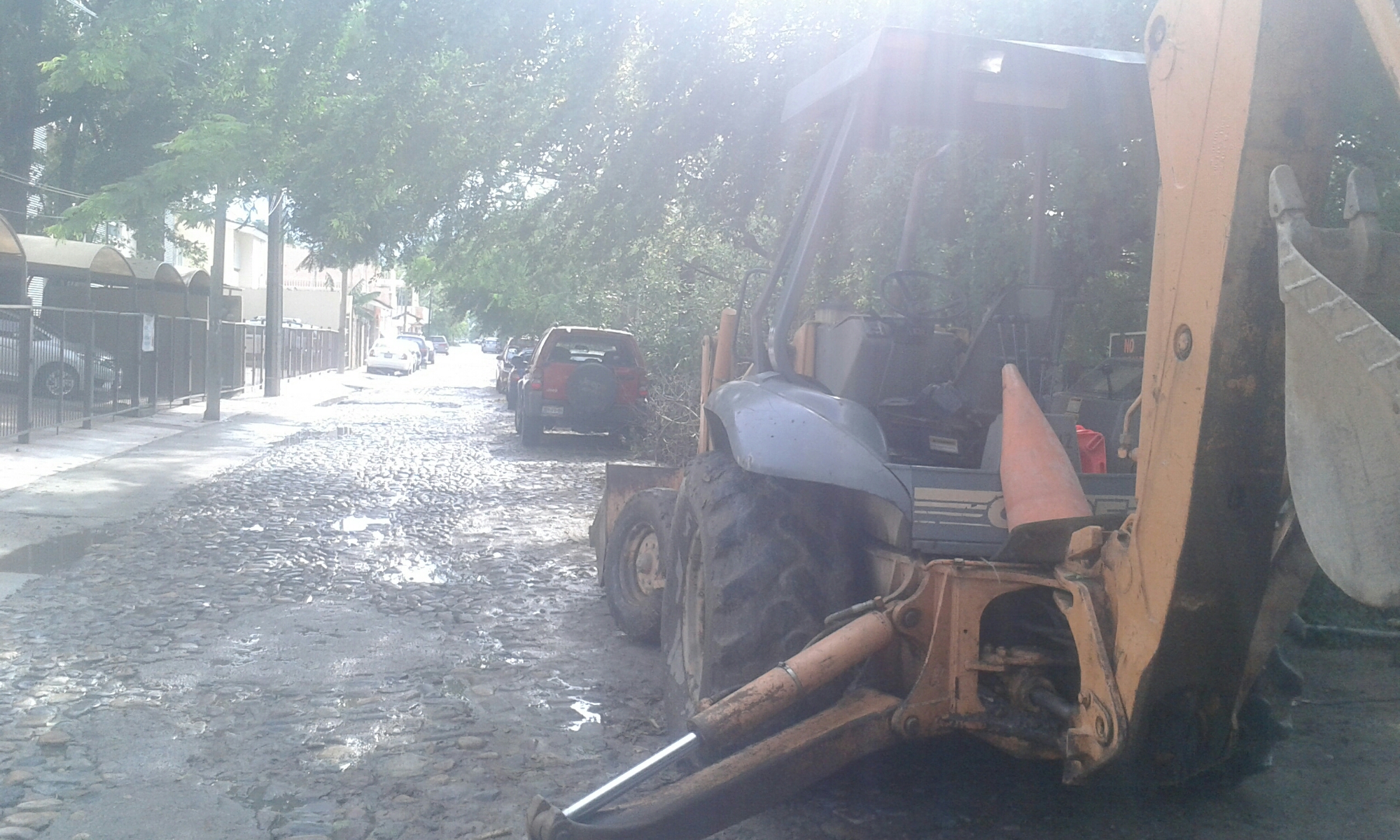 El operador de la maquina muy relajado me dice que no me preocupe, su patrón se hará cargo. Mi madre, nada relajada, baja y le pide ver a su patrón. Después de buacarlo un tiempo, resulta que era conocido de mi madre y se ofrece a reparar los daños en un taller de sus amigos.