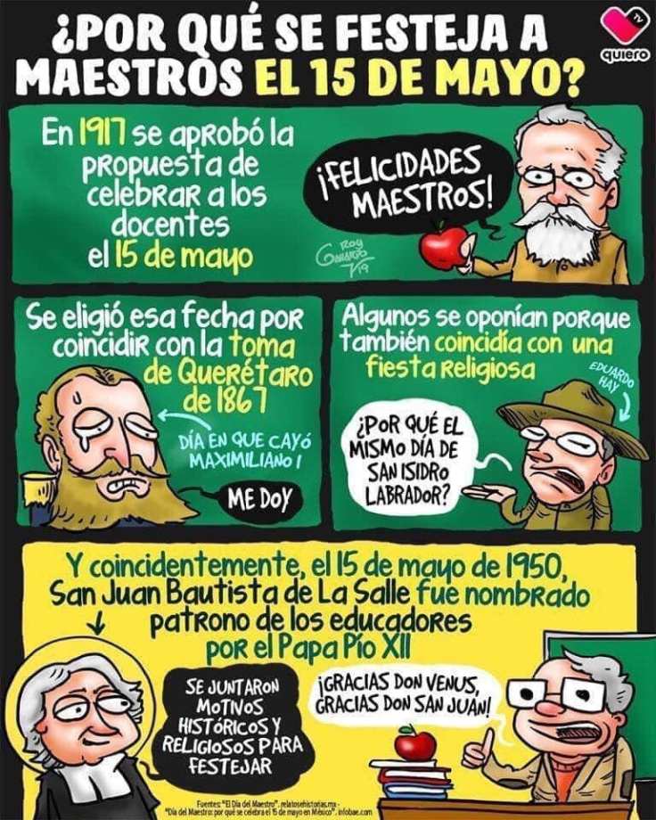 Por eso me entró la duda de por qué se celebra en México el 15 de Mayo como Día del Maestro y esto fué lo que encontré :