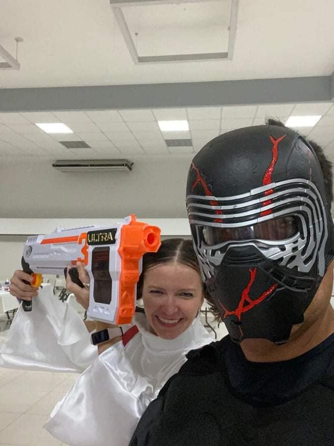 In record time Carmen got a sewing machine and improvised some tailoring skills and I recycled an old Batman costumes and we ended up disguising as Princess Leia and Kylo Ren from Star Wars. I was originally thinking on going as Han Solo (Princess Leia´s love interest). But with the sleeveless jacket, I didn’t really look like him. So I got a Kylo Ren mask instead. We went to a Salsa party and won the first prize at the Costumes contest.