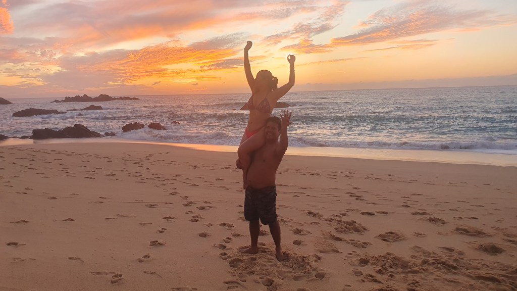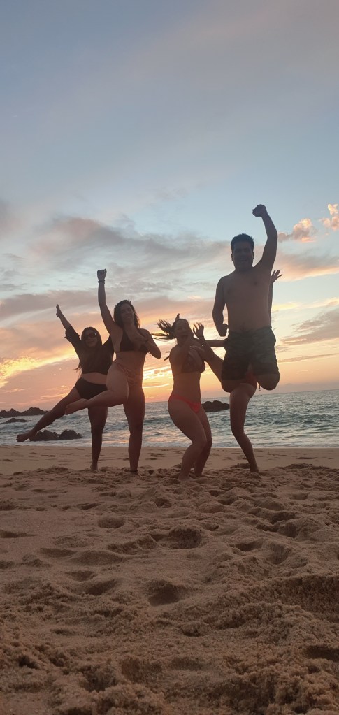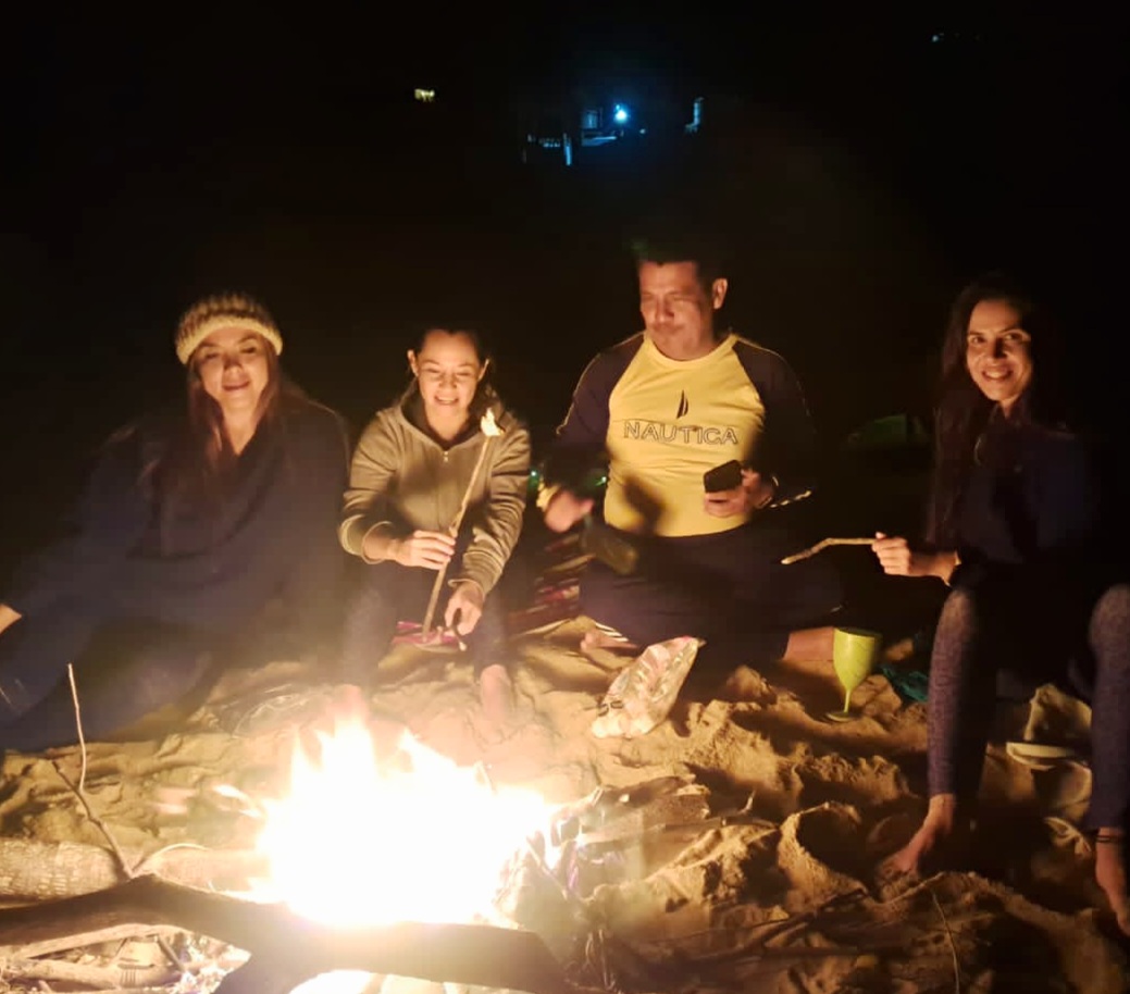 Las siguientes 2 semanas fueron de mucho trabajo, pero conforme lo había planeado con anterioridad con mis amigos Salseros y viajeros con los que me junto a tomar café en Elforoteo, a mitad del mes planeamos una ida a acampar a las bellas playas de Mayto. Invité a Azul puesto que ella no conocía Mayto, ni había acampado en su vida. Le platiqué lo espectacular que se ven las estrellas en las noches de Mayto y eso fué suficiente para convencerla. Al final varios de mis amigos no pudieron ir, y sólo acudieron además mis amigas Jess la Italiana, Jesy Penny y Karla del grupo de Tango. Pues iba a ser el único hombre entre tanta mujer. Lo bueno es que me había dejado la barba para que no me confundieran je je. Ya después, Azul me bautizó como la señora de barba. El viaje estuvo de fábula. El cielo empezó nubladito y pudimos ver un atardecer lleno de nubes rosadas y moradas, después con la noche se difuminaron y pudimos ver las estrellas. Mi único temor al ser el único hombre, el único que había visitado Mayto y el único con experiencia acampando además de Karla, es que no pudiera prender la fogata. Sin embargo, pude prender la fogata con éxito. Complementamos la visita a Mayto, con 2 obligadas visitas a comer mariscos en Tehuamixtle, y aprovechamos para nadar ahí que el agua estaba más tranquila.