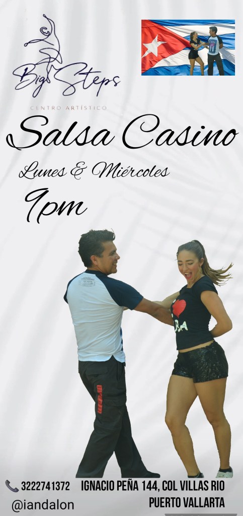 Este 7 de Julio del año del señor, me complace informarles que abrimos un grupo de clases para “básicos” y “básicos intermedios” de “Salsa Casino y Rueda de Casino” los lunes y los miércoles a las 9pm en el nuevo studio de danza Big Steps Pv (“Qué pasototes” para los que no saben ingles) de mi amigo y maestro Luis Medina.