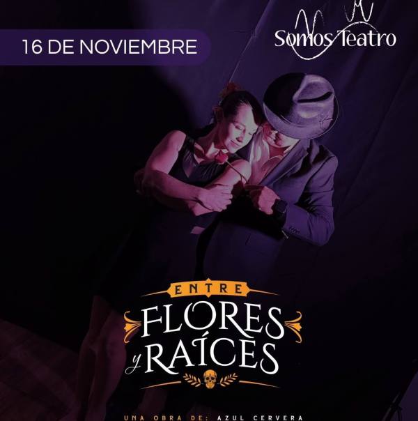 Entre flores y raíces es una obra de teatro que en entre humor, poesía y movimiento, revela cómo la violencia puede ocultarse bajo el disfraz del amor. A través de la danza, un hombre se va cruzando con diferentes mujeres a las que intenta seducir.