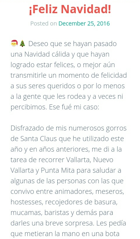 Me he sentido muy dichoso de poder haber estado presente con toda la familia y amigos que tengo acá en Puerto Vallarta y ranchos vecinos durante todo este diciembre.